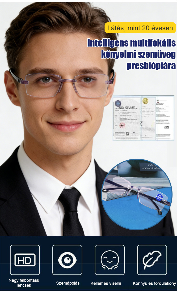 Intelligens Autofókuszos Szemüveg - Éles Látás -700 és +700 Dioptria Között